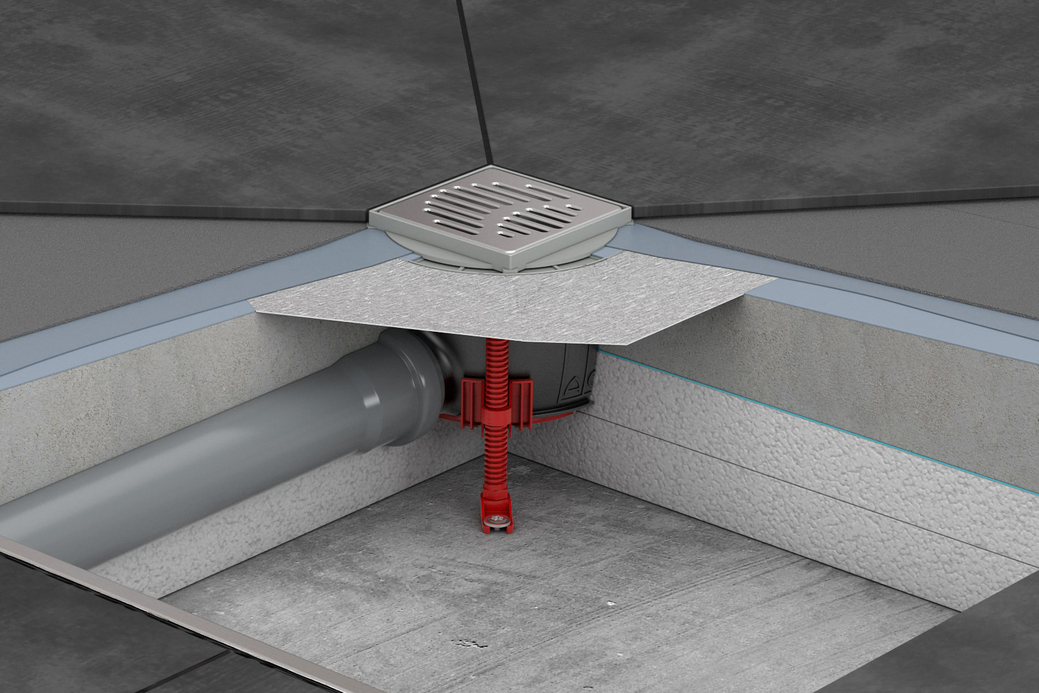 Der neue Sanitärablauf ACO Easyflow+ mit werksseitig angebrachter Dichtmanschette und Montagerahmen. Bildquelle: ACO Haustechnik